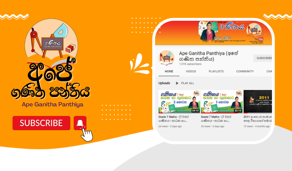 “ Ape Ganitha Panthiya ” යූ ටියුබ් නාලිකාව භාවිතයට ගත හැකි වීම.